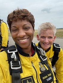 On Monday, May 3, 2021, Sharjuan Burgos, Steven A. Cohen Military Family Clinic at Centerstone, Fayetteville Outreach Director, and members of Team Unbroken—as seen on Amazon Prime’s World’s Toughest Race—jumped with the U.S. Army Golden Knights Tandem Team to bring awareness to veteran, service member and military family mental health.